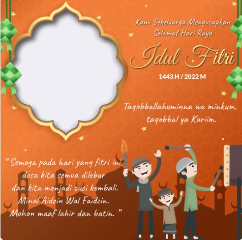 Karenanya tak ada salahnya juga mencoba sebagian twibbon atau frame hari raya Idul Fitri 1443H untuk mempercantik foto diri ataupun keluarga.