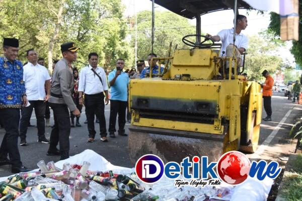 Polres Bondowoso Musnahkan 1.620 Botol Miras Berbagai Jenis