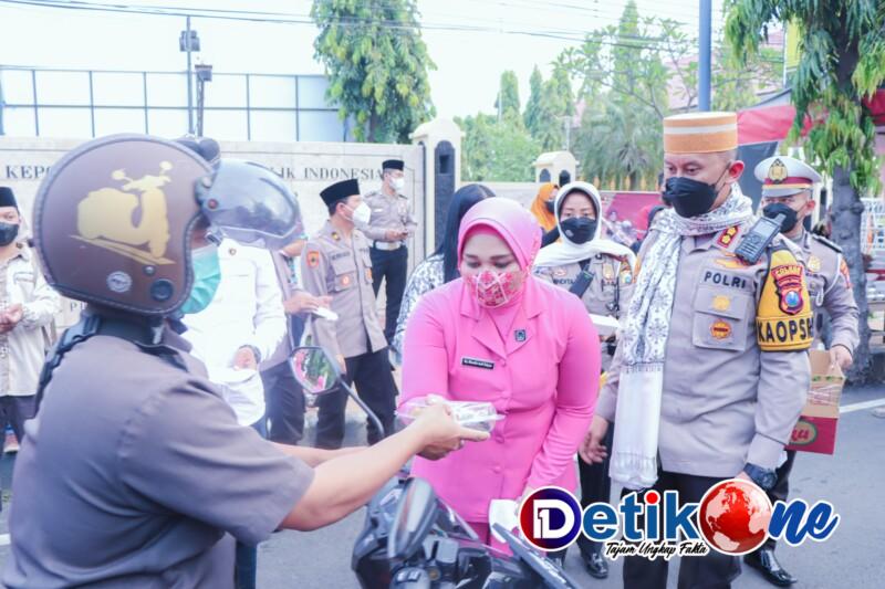 Doc.Photo Kapolres Bersama Istri Saat Membagikan Takjil Kepada Pengguna Jalan Roda Dua