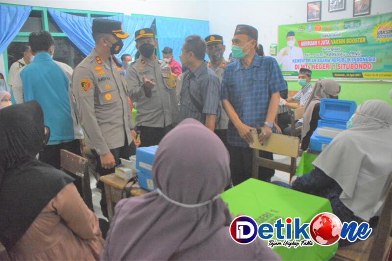 Situbondo, detik1.com – Kapolres Situbondo AKBP Dr. Andi Sinjaya, S.H.,S.I.K.,M.H. meninjau program satu juta vaksinasi booster sinergitas TNI – POLRI – KEMENAG – PBNU yang hari ini digelar di MTS Negeri 1 Situbondo Kel. Mimbaan Kecamatan Panji Situbondo oleh Tim Vaksinasi Mobile Klinik Pratama Polres Situbondo bersama Polkes 05.09.19 kodim 0823 Situbondo, Kamis (21/04/2022)