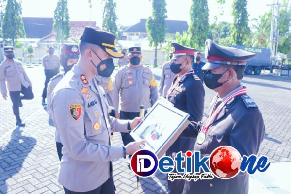 Dalam upacara pelepasan tersebut, Kapolres Situbondo AKBP Dr. Andi Sinjaya, S.H., S.I.K., M.H. memberikan piagam penghargaan dan cinderamata kepada empat anggota yang Purna Bhakti.