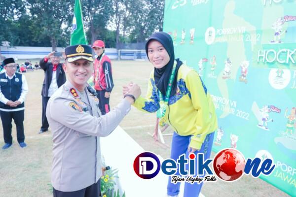 “ Kita menjaga agar pelaksanaan Porprov VII Jatim 2022 yang berlangsung di Kabupaten Situbondo berlangsung aman dan nyaman. Selamat kepada para atlet peraih medali pada cabor Hockey ” kata AKBP Dr. Andi Sinjaya, S.H., S.I.K., M.H. usai pengalungan medali kepada atlet juara cabor Hockey.