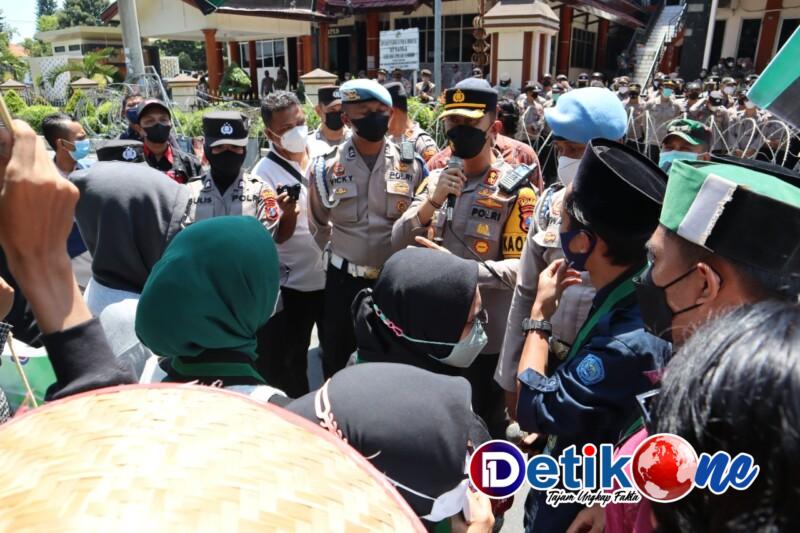 Dihadapan Mahasiswa, Kapolres Situbondo AKBP Dr. Andi Sinjaya, S.H.,S.I.K.,M.H. menyampaikan pesan kamtibmas bahwa personil pengamanan TNI Polri hadir untuk mengawal dan membantu komunikasi para Mahasiswa dalam menyampaikan aspirasi atau tuntutan kepada pihak DPRD Situbondo.