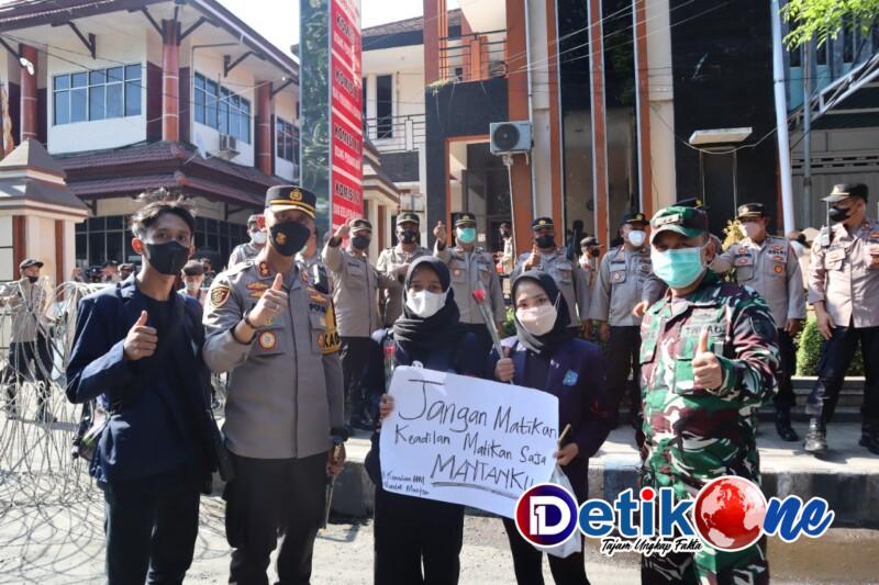 Dihadapan Mahasiswa, Kapolres Situbondo AKBP Dr. Andi Sinjaya, S.H.,S.I.K.,M.H. menyampaikan pesan kamtibmas bahwa personil pengamanan TNI Polri hadir untuk mengawal dan membantu komunikasi para Mahasiswa dalam menyampaikan aspirasi atau tuntutan kepada pihak DPRD Situbondo.