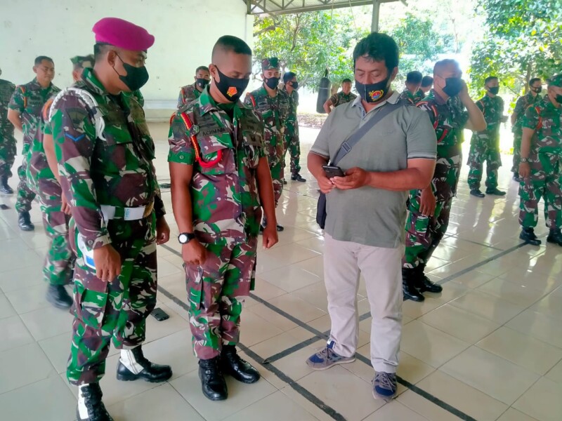 Situbondo, detik1.com – Anggota Staf Pengamanan di samping anggota provost Pusat Latihan Pertempuran (Puslatpur) Marinir -5 Baluran Inspeksi Mendadak (Sidak) Handphone seluruh prajurit Puslatpur Marinir -5 Baluran di Gedung Balai Prajurit (Bapra) Kesatrian Sugeng Hardjo Taruno. Situbondo, Kamis (17/2/2022).