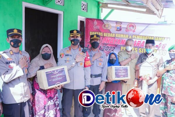 Situbondo, detik1.com – Kapolres Situbondo AKBP Dr. Andi Sinjaya, S.H., S.I.K., M.H. menyerahkan objek bangunan program bedah rumah dan pembuatan jamban kepada penerima bantuan sosial dalam rangka Hari Bhanyangkara ke 76 di dusun Gudang desa Pesisir kecamatan Besuki Kabupaten Situbondo, Selasa (28/06/2022).