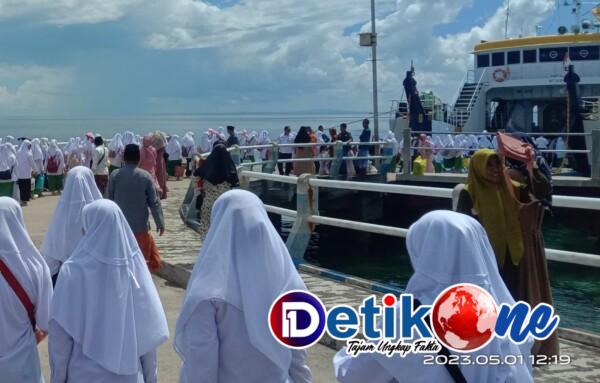 Sumenep, detik1.co.id // Untuk mempermudah arus Balik Pesantren para Santri pondok pesantren Salafiyah Syafi’iyah Sukorejo Situbondo asal kepulauan Sapudi Sumenep. Kembali para alumni dan Ikatan Santri ( IKSASS ) melaksanakan arus balik Berjema’ah ( BAJA ) paska lebaran 1444 H dengan menggunakan kapal Fery Wicitra Dharma I dengan titik keberangkatan dari pelabuhan Tarebung kecamatan Gayam Sumenep dengan tujuan pelabuhan jangkar Situbondo. Senin ( 01/05/2023).