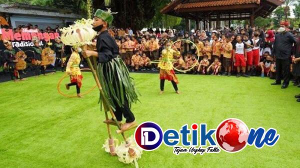 Banyuwangi, detik1.com – Bupati Banyuwangi menggelar “Festival Memengan Tradisional” alias Festival Permainan Tradisional. Sebanyak 750 pelajar SD terlihat asyik memainkan 25 macam memengan atau permainan tradisional untuk memperingati Hari Anak Nasional. Festival Memengan yang berlangsung di Taman Blambangan berlangsung meriah. Ragam permainan tradisional dimainkan ratusan anak. Mulai dari egrang, congklak, bakiak, jaranan, hoola hoop, hingga bedhil-bedhilan (tembak-tembakan).
