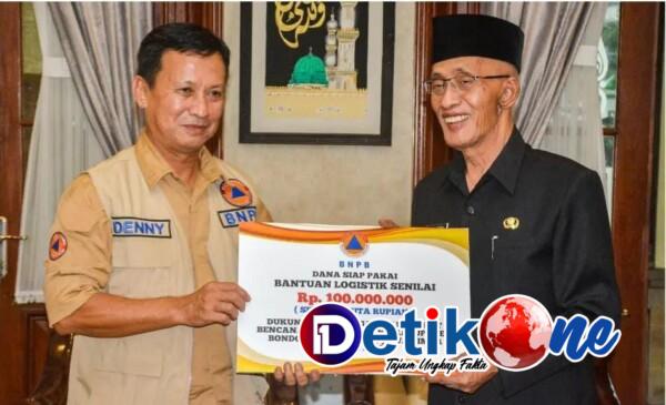 Bantuan tersebut terdiri dari Dana Siap Pakai (DSP) senilai Rp 100 juta untuk dukungan penanganan darurat bencana banjir dan 250 juta untuk dukungan operasional penanganan darurat bencana banjir. Bantuan diserahkan langsung oleh Tenaga Ahli BNPB Mayjen TNI (Purn) Denny Herman di Pendopo Bupati.
