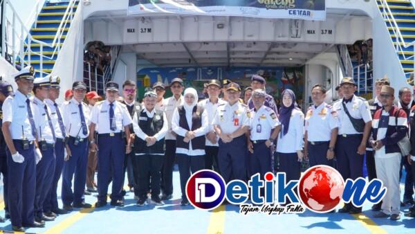 Situbondo, detik1.co.id // Bupati Situbondo, Karna Suswandi mendampingi Gubernur Jawa Timur, Khofifah Indar Parawansa, melepas pemberangkatan ratusan warga yang menjadi peserta mudik gratis via kapal laut dari Pelabuhan Jangkar menuju Pulau Ra’as Madura, Kamis 20 April 2023.