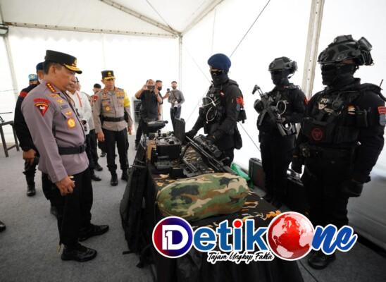 “Tadi kita semua kita cek satu-satu, peralatan kita sudah siap, baik mulai dari alat pendeteksi kemudian alat untuk melaksanakan evakuasi dan juga alat untuk penghancuran (bom) atau explosive,” ujar Kapolri.