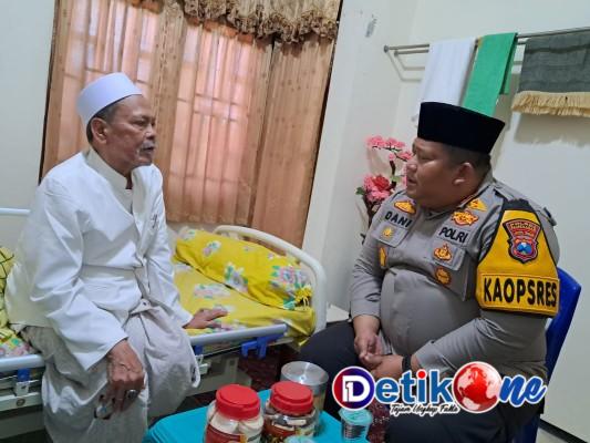 Kedatangan AKBP Jazuli Dani Iriawan disambut hangat oleh pengasuh Ponpes Miftahul Ulum Panyepen, RKH. Mudatstsir Badrudin.