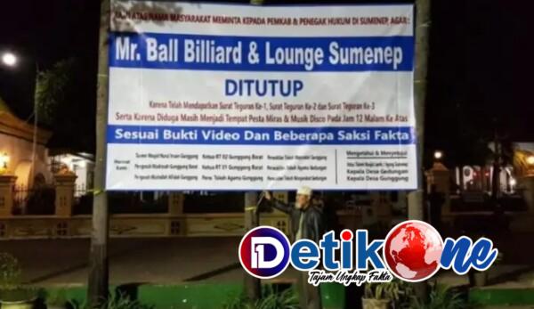 Sumenep, detik1.com – Polemix Mr.Ball launge Sumenep Madura terus bergulir di masyarakat.sebagai bukti warga desa kungkung dan desa Gedungan kecamatan Batuan kabupaten Sumenep Jawa timur Madura bentangkan kembali sekali gus 3 banner di 3 tempat strategis .hal ini di lakukan ke sekian kalinya karena warga kecewa sampai saat ini belum ada tindakan kongkrit yang tegas dari penegak hukum kabupaten Sumenep dengan menutup Mr.Ball.