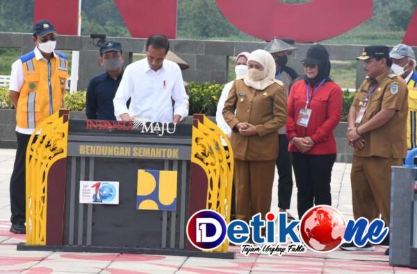Setelah itu, Presiden Joko Widodo didampingi Iriana Joko Widodo meresmikan Bendungan Semantok yang terletak di Kabupaten Nganjuk, Provinsi Jawa Timur.