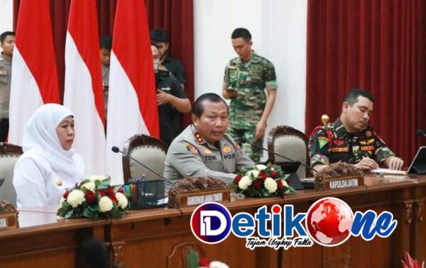 Surabaya, detik1.com – Gubernur Jatim Khofifah Indar Parawansa, Kapolda Jatim Irjen Pol Dr.Toni Harmanto,MH, Pangdam V Brawijaya Mayor Jenderal TNI Farid Makruf, dan jajaran Forkompimda lainya menggelar rapat koordinasi terkait Finalisasi Kesiapan Acara Puncak Harlah 1 Abad NU 2023, yang digelar di Gedung Negara Grahadi Surabaya, Jumat (03/02/2023).