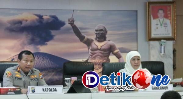 Apresiasi disampaikan oleh Khofifah kepada Polda Jatim di Gedung Rupatama Polda Jatim saat menggelar pers conference, Senin (26/06/2023).