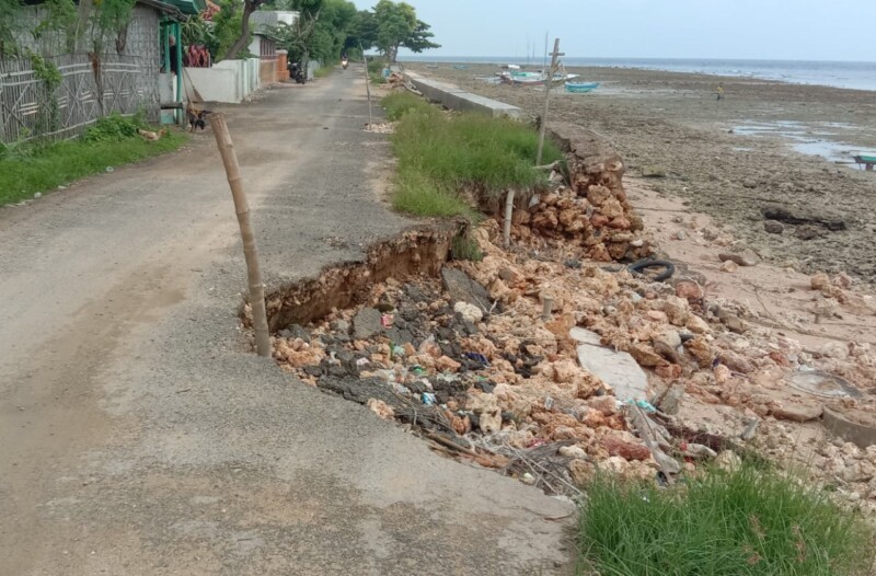 Sumenep, detik1.com – Jalan Raya pesisir Desa Sonok Kecamatan Nonggunong Kabupaten Sumenep, Sangat menghawatirkan keselamatan Masyarakat pengguna jalan, Rusak parahnya jalan pesisir Desa Sonok ini disebabkan 2 hal, yang pertama karena faktor Alam, dimana letak posisi jalan terlalu dekat dengan bibir pantai, sehingga disaat musim angin Barat datang deburan ombak tanpa Tedeng Aleng Aleng menghantam jalanan yang hanya dibatasi tangkis laut.
