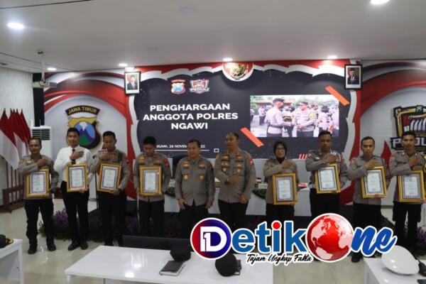 Di Ruangan Guyup Polres Ngawi, Kapolda Jatim didampingi Kapolres Ngawi AKBP Dwiasi Wiyatputera, S.H , S.I.K., M.H., memberikan penghargaan kepada anggota yang berprestasi, yakni Wakapolres Ngawi Kompol Haryanto, S.H., S.I.K., M.M., telah berhasil sebagai Kreator program Lapor Pak Kapolres Ngawi