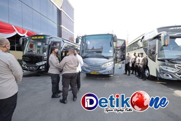 Polda Jatim terima tiga kendaraan jenis Bus, dari tiga perusahaan. Ketiga kendaraan tersebut diperiksa langsung oleh Kapolda Jatim Irjen Nico Afinta, untuk memastikan kelayakan, kelengkapan baik dari interior, eksterior, hingga dokumen kendaraan itu sendiri.
