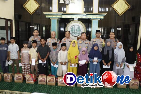 Dalam kesempatan itu, Kapolda Jatim menyempatkan diri melaksanakan salat dzuhur berjamaah di Masjid Al-Asykar dan dilanjutkan dengan pemberian santunan kepada anak yatim piatu binaan Polres Situbondo.