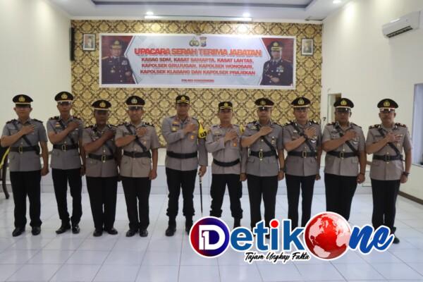 Bondowoso, detik1.co.id // Kapolres Bondowoso AKBP Bimo Ariyanto, SH. S.I.K memimpin upacara serah terima jabatan (sertijab) Kasat Lantas Polres Bondowoso, Kabag SDM Polres Bondowoso, Kasat Samapta dan beberapa Kapolsek yang ada di wilayah Hukum Polres Bondowoso.