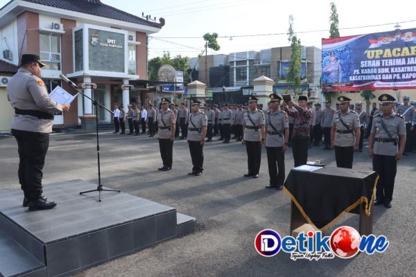 Pamekasan, detik1.co.id // Kapolres Pamekasan, AKBP Jazuli Dani Iriawan memimpin upacara serah terima jabatan (sertijab) enam pejabat utama Polres Pamekasan di Lapangan Apel Polres Pamekasan, Madura.