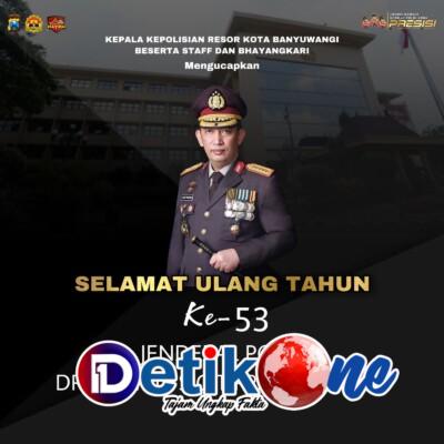 JAKARTA, detik1.com – Selamat ulang tahun ke 53 untuk pucuk pimpinan tertinggi di kepolisian bapak Kapolri Listyo Sigit Prabowo, M.Si . Semoga panjang umur, sehat selalu.