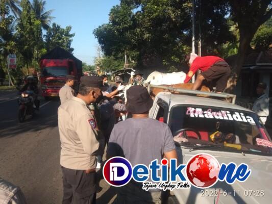“Saat penyekatan PMK di lakukan petugas memeriksa 30 kendaraan R 4 yang mengangkut ternak dari Kab Bondowoso dan petugas menemukan 7 ekor hewan ternak Sapi yang terindikasi dengan Ciri PMK.”ungkap kapolsek kota