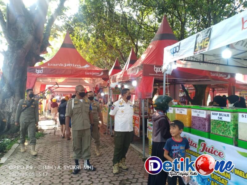 Dengan padatnya pengunjung Kasat Pol PP Bondowoso Slamet Melakukan pengecekan kepada seluruh pedagang dan pengunjung yang berburu takjil di depan Pemkab Alun-alun Bondowoso.