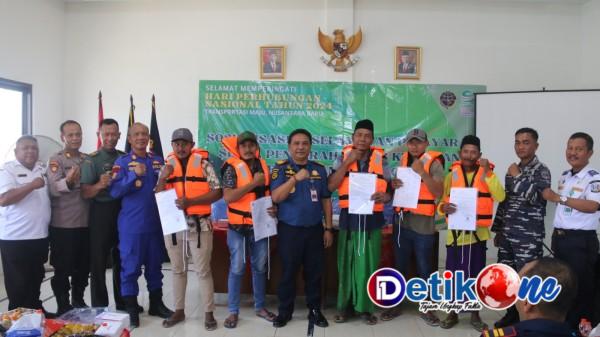 Situbondo, detik1.co.id // Dalam rangka memperingati Hari Perhubungan Nasional (Harhubnas) 2024 yang ke-53, Kantor Kesyahbandaran dan Otoritas Pelabuhan (KSOP) Panarukan mengadakan kegiatan KAMPANYE KESELAMATAN PELAYARAN di Pelabuhan Jangkar, Situbondo, Kepala KSOP Panarukan Kelas IV Panarukan, Herland Aprilyanto, S.H.,M.M., memimpin acara Bantuan 50 Life Jacket dan 26 e-Pas Kecil kepada para pengguna jasa dan nelayan setempat.