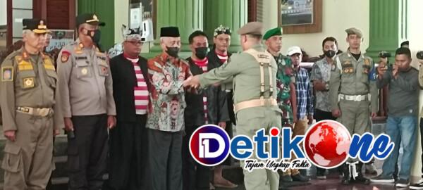 Pataka Jer Basuki Mawa Beya Oleh Bupati Bondowoso ke Kasat POL PP Bondowoso Slamet Yantoko S. Sos M, M, dan Di teruskan Anggota Sat Pol PP Bondowoso.