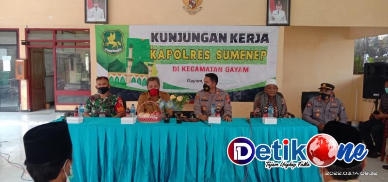 Kedatangan Kapolres Sumenep AKBP. Rahman Wijaya S.I.K. S.H. M.H. bersama Rombongan di kecamatan Gayam Disambut segenap Forpinka para Kepala Desa dan Tokoh Agama dan Tokoh Masyarakat