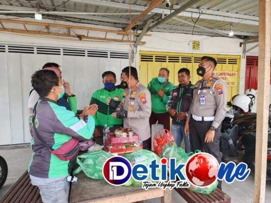 Untuk itu, Polres Blitar Kota memberikan bantuan sembako kepada sejumlah driver ojek online.