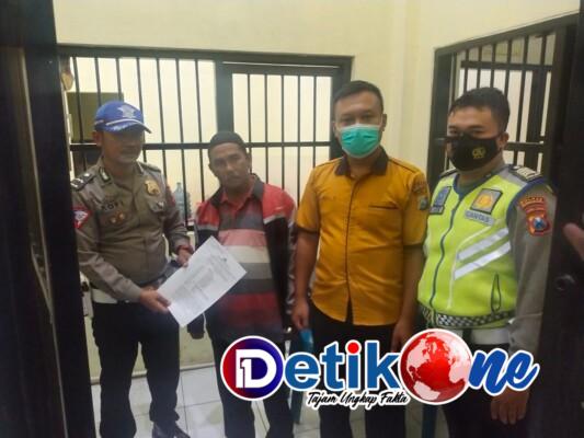 Di tahanya Sutikno (49) mantan kepala Desa tersebut Lantaran tidak bertanggung jawab setelah menabrak seseorang sehingga mengalami luka berat.