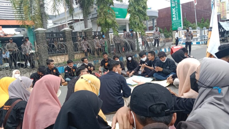 Moh. Yudik Faisal Ali selaku koordinator lapangan (Korlap) aksi demonstrasi menyampaikan dalam orasinya, bahwa dirinya dan para demonstran tidak ujub-ujub langsung demo