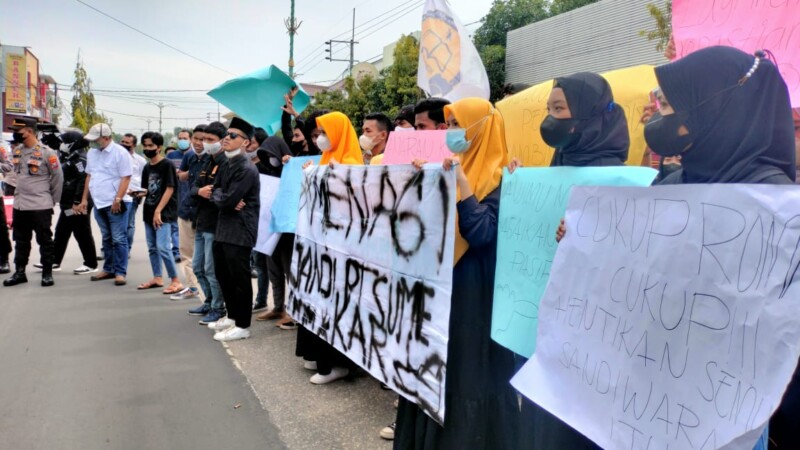 Moh. Yudik Faisal Ali selaku koordinator lapangan (Korlap) aksi demonstrasi menyampaikan dalam orasinya, bahwa dirinya dan para demonstran tidak ujub-ujub langsung demo