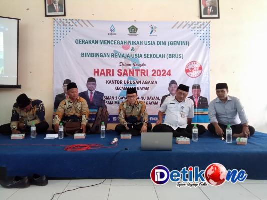 Sumenep, detik1.co.id // Dalam rangka Hari Santri tahun 2024, Kantor Urusan Agama ( KUA) Kecamatan Gayam laksanakan program Gerakan Mencegah Nikah Usia Dini ( GEMINI) dengan menggelar Bimbingan Remaja Usia Sekolah ( BRUS ) yang dilaksanakan secara serentak seluruh jajaran Kantor Urusan Agama se Kabupaten Sumenep. Rabu (16/10/2024).