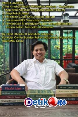 Pamekasan, detik1.id // Di tengah gencarnya operasi pemberantasan rokok ilegal dan polemik penyimpangan pita cukai, sebuah seruan tegas muncul dari jantung industri tembakau Jawa Timur. HRM Khalilur R. Abdullah Sahlawiy, atau yang akrab disapa Gus Lilur, Pemilik Bandar Rokok Nusantara Global Grup (BARONG Grup), meluncurkan sebuah manifesto perjuangan yang ia sebut sebagai PANCA AMPERA (Lima Amanat Petani Tembakau Madura – Nusantara).