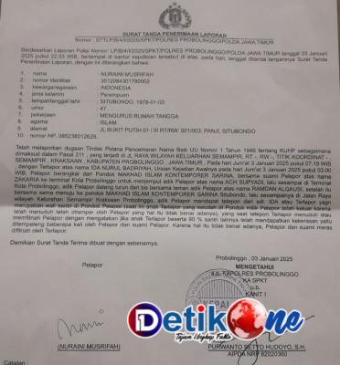 Situbondo, detik1.co.id // Merasa difitnah telah melakukan kekerasan terhadap anak terlapor beserta 90 persen santri lainnya, Nyai Nuraini Musrifah selaku istri dari Pengasuh Pondok Pesantren Makhad Islam Kontemporer Sarina, yang beralamat di Jalan Bukit Putih 01/III, Panji, Situbondo, Jawa Timur, resmi melaporkan mantan wali santri berinisial INB ke pihak kepolisian.