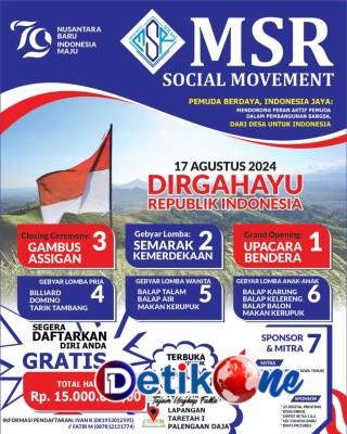 Pamekasan, detik1.co.id // MSR Social Movement akan menggelar lomba-lomba menarik untuk menyambut hari kemerdekaan 17 Agustus 2024 di Lapangan Taretah 1 Desa Palengaan Daja Kecamatan Palengaan Kabupaten Pamekasan.