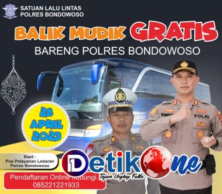 Bondowoso, detik1.co.id // Polres Bondowoso melalui Satuan Lalulintas Kepolisian Resor (Polres) Bondowoso bekerja sama dengan Dinas Perhubungan Kabupaten Bondowoso menyediakan pelayanan bus gratis saat arus balik mudik, dimulai dari Tanggal 28 April 2023.