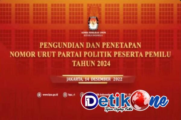 Jakarta, detik1.com – Pascapenetapan 17 partai politik nasional dan 6 partai politik lokal Aceh peserta Pemilu 2024, Komisi Pemilihan Umum (KPU) langsung menggelar rapat pleno terbuka pengundian dan penetapan nomor urut partai politik, peserta pemilihan umum tahun 2024, Rabu (14/12/2022) malam, di Halaman Gedung KPU, Jakarta.