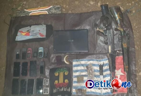 Ỏrganik AK 47 1 pucuk, sẹnjata rakitan 1 pucuk, amunisi 5.56 mm 5 buah, amunisi 7.62 7buah, bủsur panah 3 buah, anak panah, parang, HP dan bendera bintang kejora.