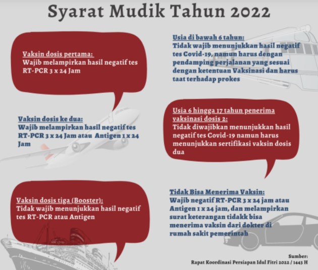 Di tahun ini, tradisi mudik kembali mendapatkan ijin dari pemerintah, namun dengan ketentuan atau persyaratan yang harus dipatuhi oleh calon pemudik.