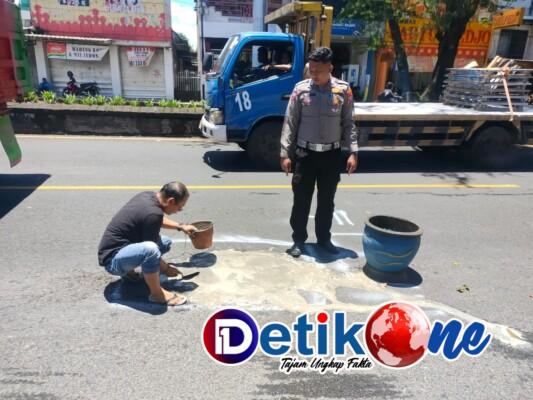 Peduli Keselamatan Masyarakat, Polisi di Malang Tambal Jalan Berlubang Bersama Warga