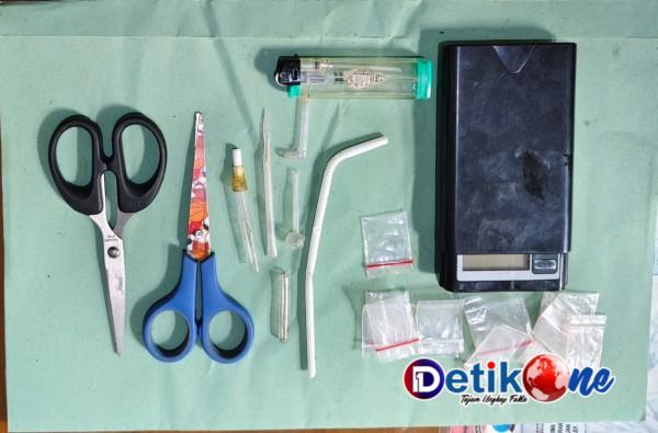 Dari penggeledahan di rumah OSA, petugas menemukan barang bukti berupa satu pocket sabu seberat 0,30 gram yang disembunyikan dalam bungkus rokok Surya, seperangkat alat isap (bong), serta kunci T.