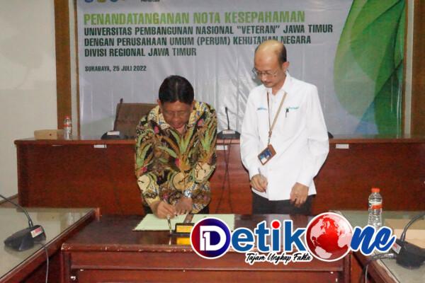 Surabaya, detik1.com – Perum Perhutani Divisi Regional (Divre) Jawa Timur (Jatim) melakukan penandatanganan nota kesepahaman (MoU) mengenai kerjasama di bidang Penyelenggaraan Program Merdeka Belajar-Kampus Merdeka (MB-KM). Hal itu dilakukan dalam rangka meningkatkan hubungan antara 2 (dua) lembaga, kerjasama tersebut diteken Senin (25/07/2022) di Gedung Rektorat, Ruang Arjuna Civitas Akademika, Kampus Universitas Pembangunan Nasional (UPN) “Veteran” Surabaya.