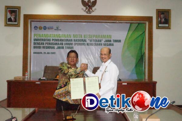 Surabaya, detik1.com – Perum Perhutani Divisi Regional (Divre) Jawa Timur (Jatim) melakukan penandatanganan nota kesepahaman (MoU) mengenai kerjasama di bidang Penyelenggaraan Program Merdeka Belajar-Kampus Merdeka (MB-KM). Hal itu dilakukan dalam rangka meningkatkan hubungan antara 2 (dua) lembaga, kerjasama tersebut diteken Senin (25/07/2022) di Gedung Rektorat, Ruang Arjuna Civitas Akademika, Kampus Universitas Pembangunan Nasional (UPN) “Veteran” Surabaya.
