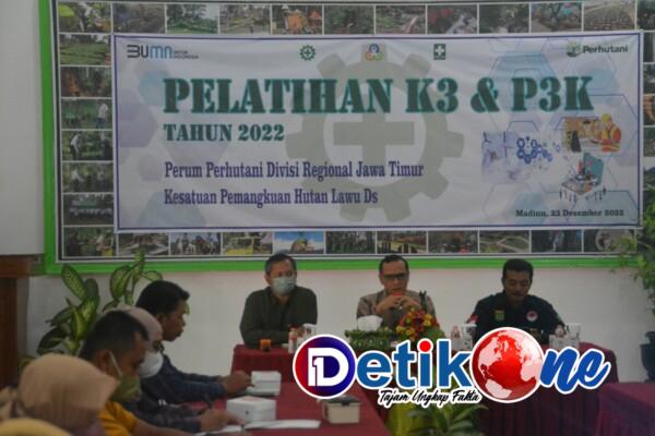 Kota Madiun, detik1.com – Perum Perhutani Kesatuan Pemangkuan Hutan (KPH) Lawu Ds bersama Dinas Ketenaga Kerjaan (Disnaker) Mengelar Pelatihan Keselamatan dan Kesehatan Kerja (K3) dan pelatihan Pertolongan Pertama Pada Kecelakaan (P3K) dengan Palang Merah Indonesia (PMI) Kota Madiun yang dilaksanakan di Aula Kantor Perhutani KPH Lawu Ds, Jumat (23/12/2022).
