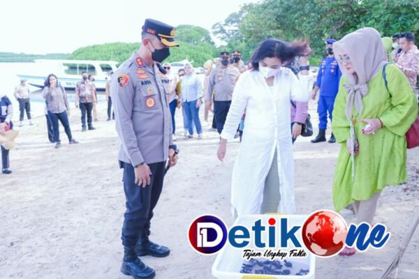 Doc.Photo Kapolres Situbondo AKBP Andi Sunjaya Bersama Istri Ny.Marcella Andi Sinjaya saat Melepas Tukik di Pantai Bama